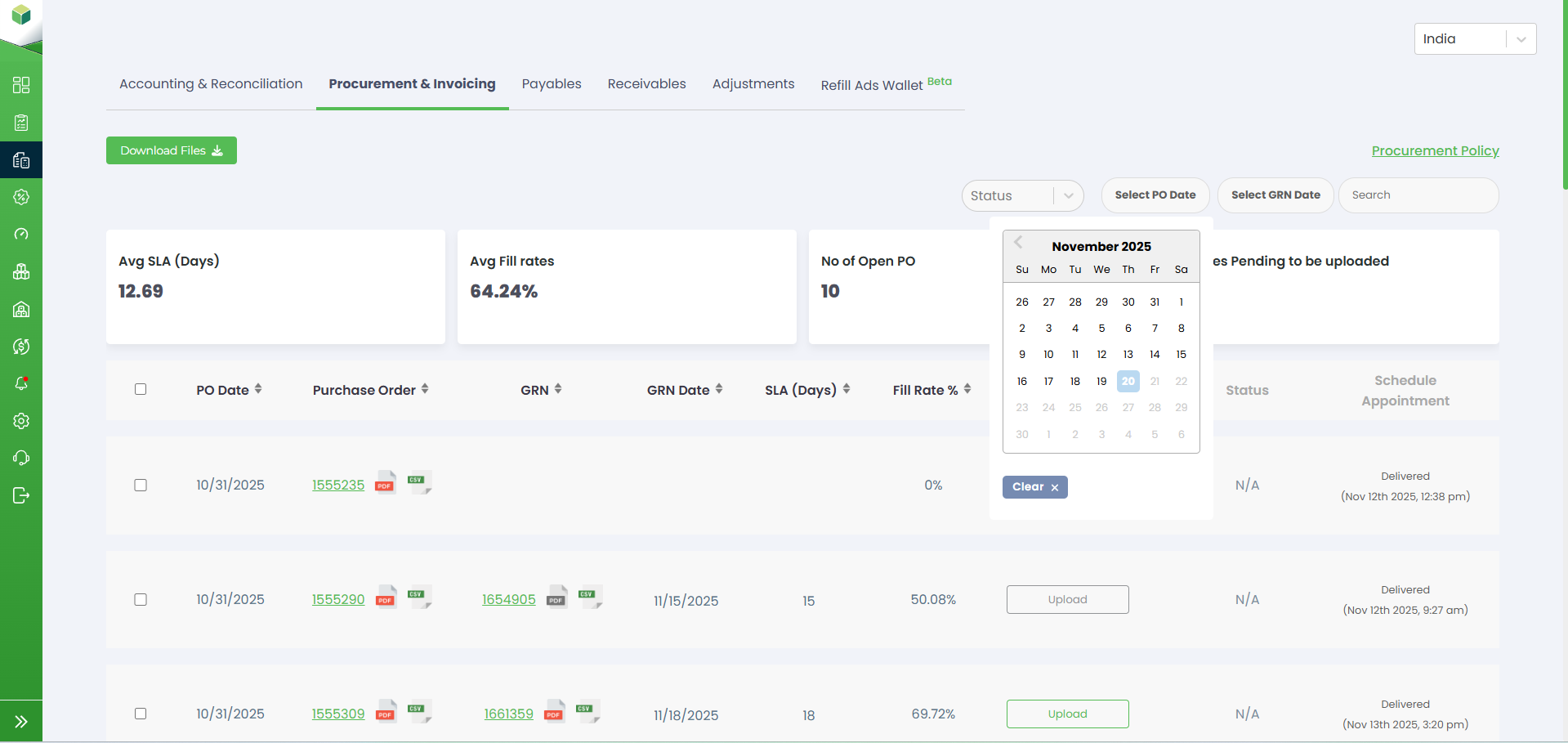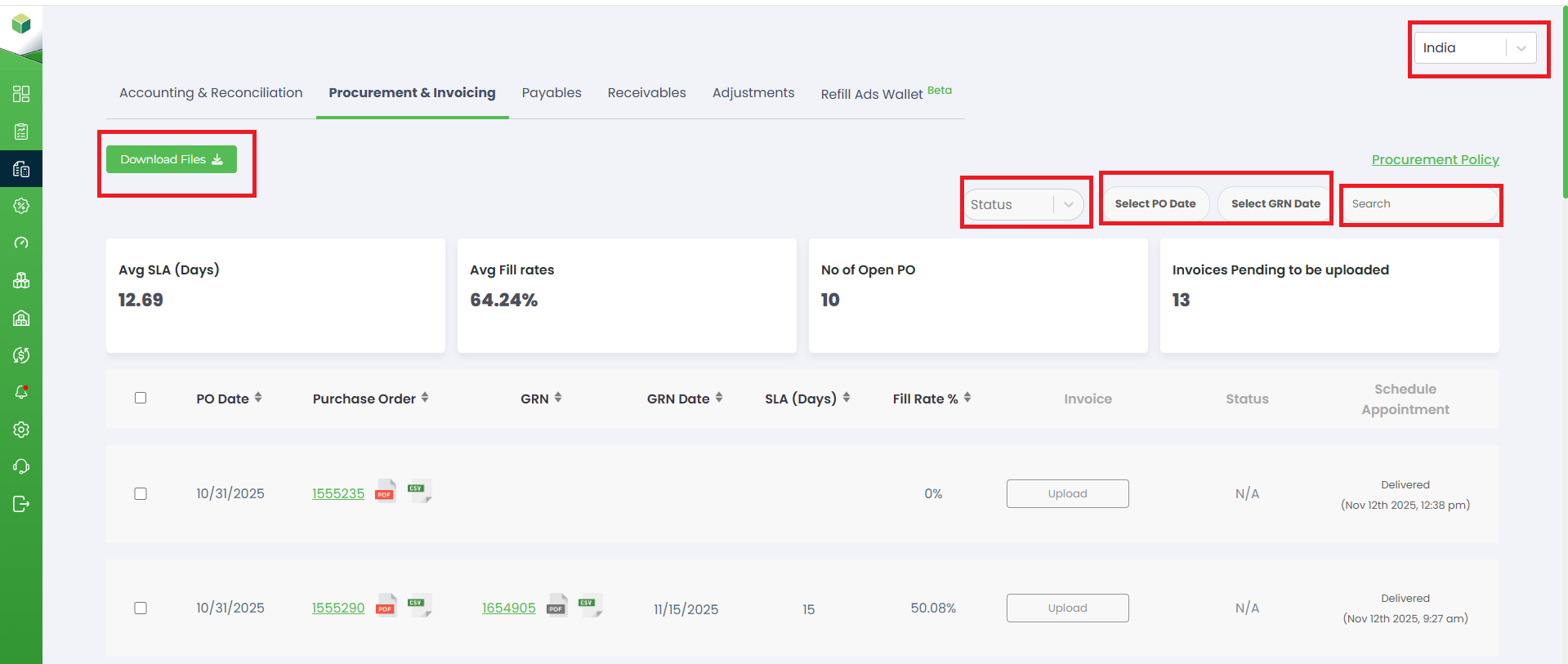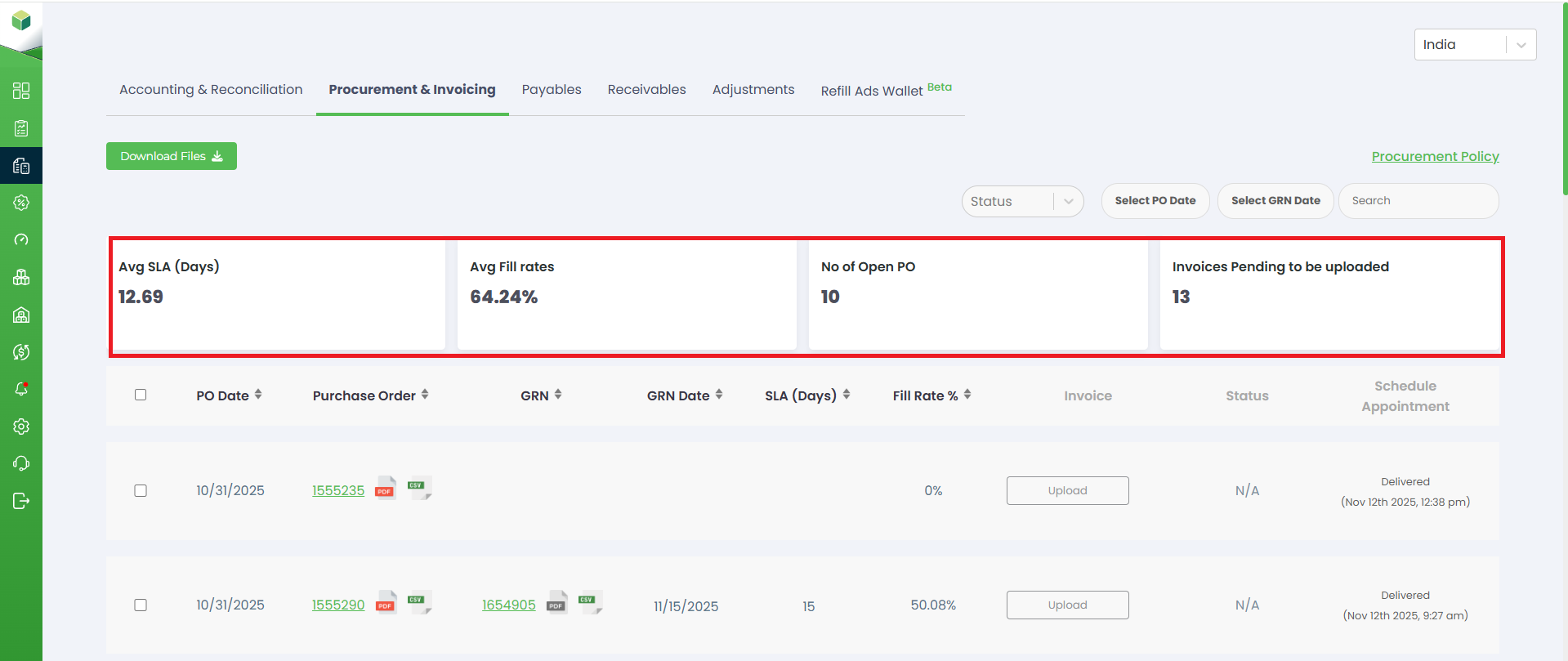 Invoices Pending to Be Uploaded: Shows how many invoices are yet to be uploaded for their corresponding POs or GRNs
