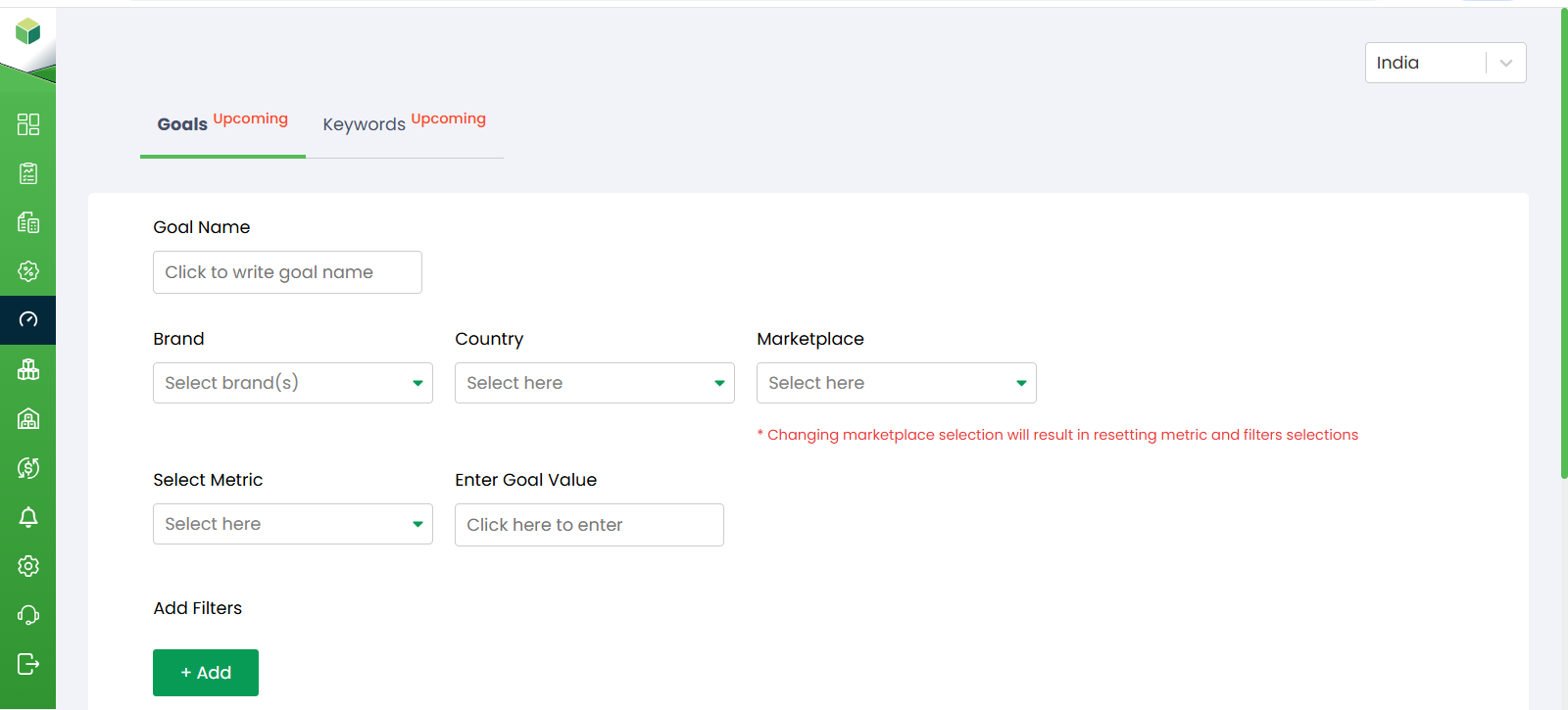 - Brand: Select the brands from the dropdown menu for which you want to set the goal.