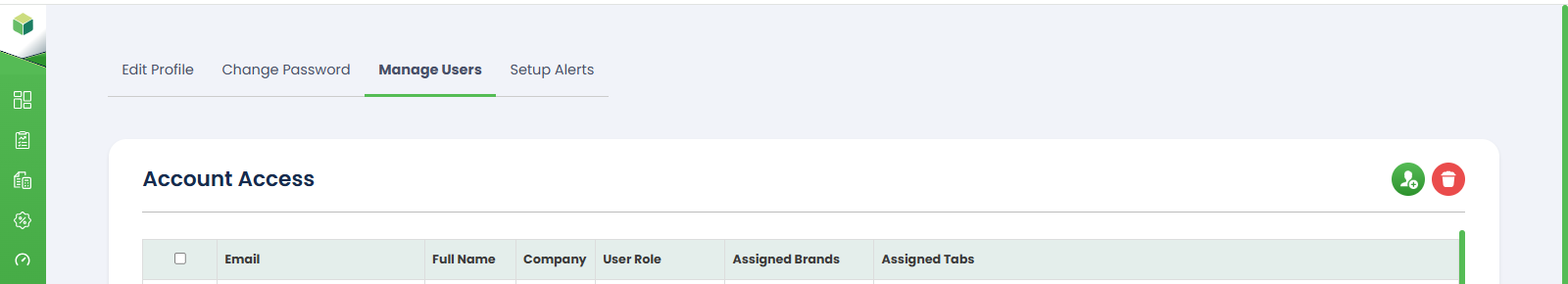 - To add a new user, click on the "Add User" button (Icon) and fill in the required information, including their full name, email address, countries, brands and assigned permissions.